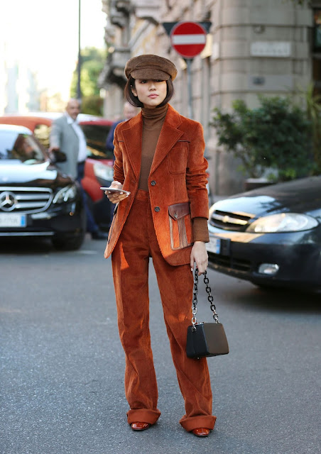 Já aqui vos tinha dito que os anos 90 regressaram em força esta estação e um dos materiais que também está de volta é a bombazine. Eu nasci nos anos 90 - em 1993, para ser mais exacta - e lembro-me de ter umas calças flare e umas culottes em castanho neste material. Também se recordam de ter peças em bombazine quando eram mais novas?